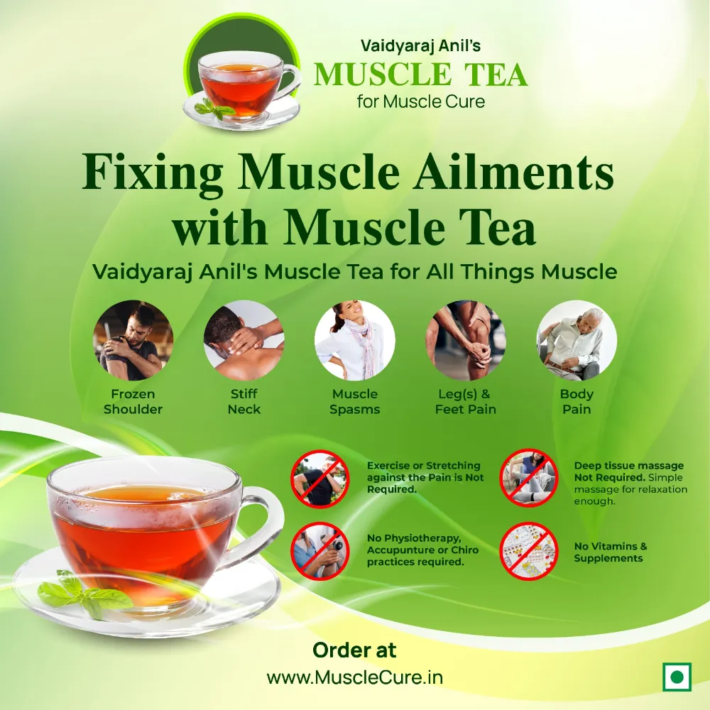 Vaidyaraj Anil’s ‘Muscle Tea’ for Muscle Spasms, Acute to Chronic Muscle Compression to Muscle Fibrosis, Frozen Shoulder, Stiff Neck, Osteoarthritis, Tendons & Ligament Issues, Leg(s) Pain, Feet & Under Feet Pain & Stinging